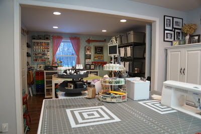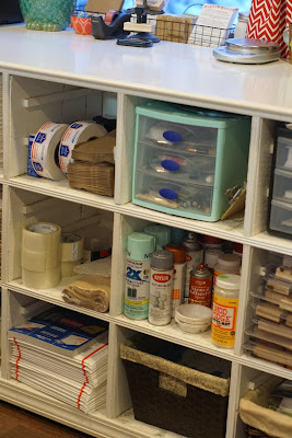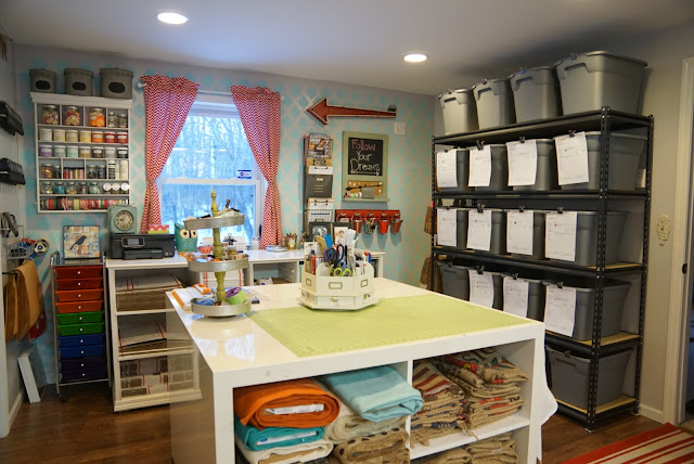 This is the other side of my room. It is also shipping central! Each bin contains and order and its invoice. Once the order is complete I add the shipping label and my shipping manager (aka the hubs) packages everything and sends it out.